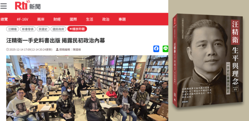 汪精衛一手史料書出版 揭露民初政治內幕 / 陳國維 Cindy Ho2025-12-14報章 得獎記者陳國維報導2025年12月14日在台北舉行的《汪精衛生平與理念:一手史料重構民國史》平裝書發表會。這場由汪精衛紀 … Read More